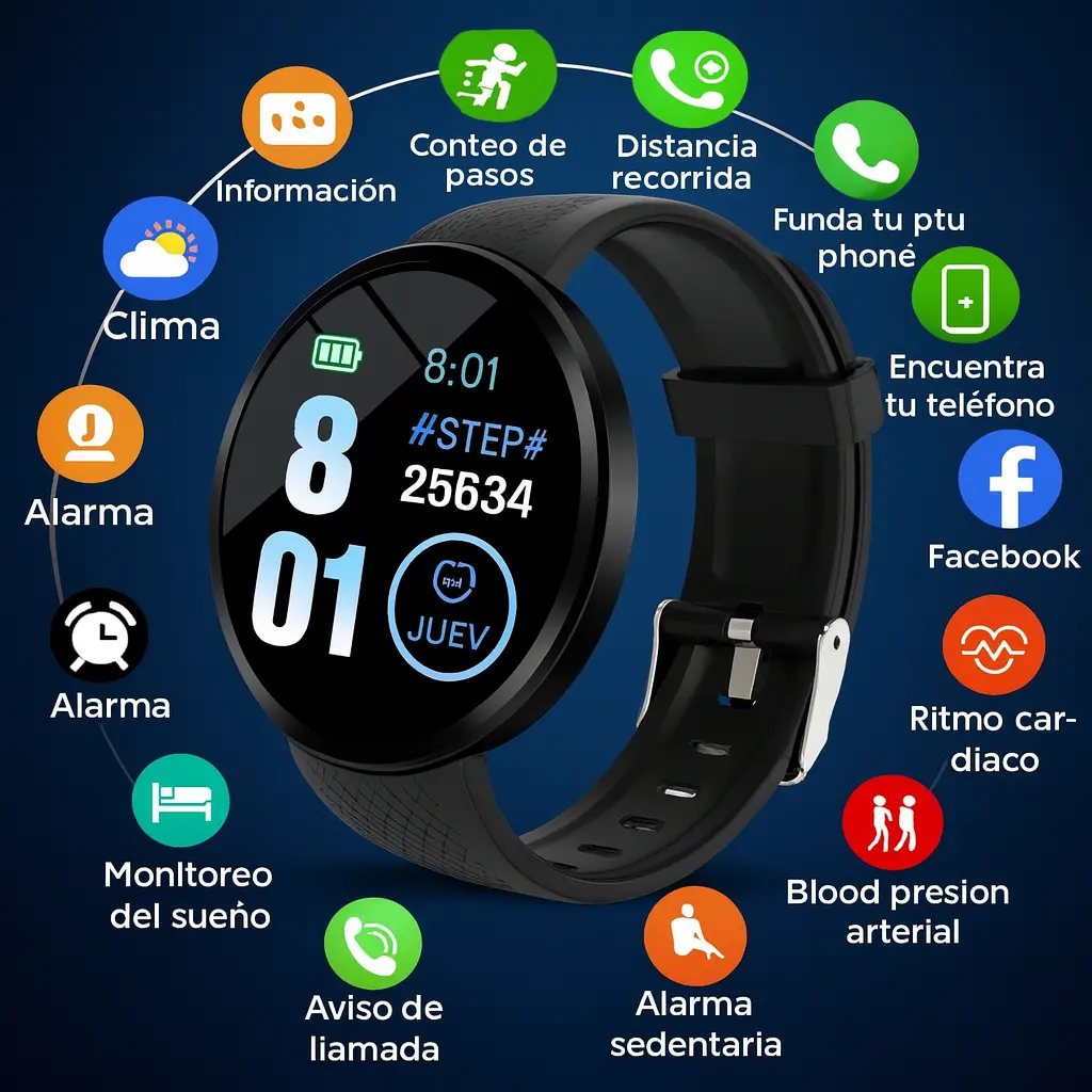 Porque es más que un reloj: es un asistente, un entrenador y un accesorio de estilo. Te ayuda a ganar tiempo, cuidar tu salud y lucir siempre conectado con elegancia.